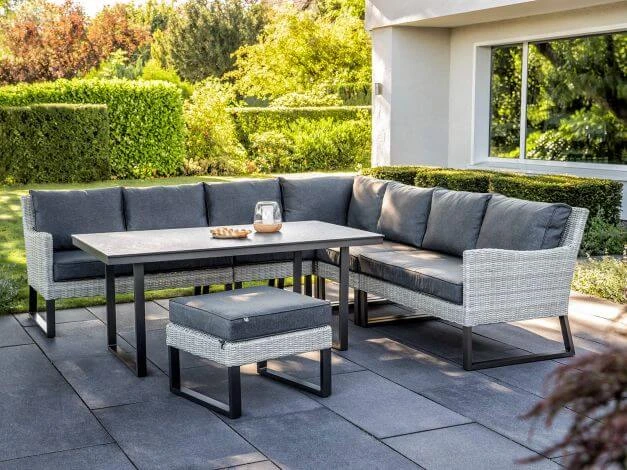Modulare Casual Dining-Garnituren machen es möglich: ob mit einem Glas Wein in der Hand den Sonnenuntergang genießen oder einen geselligen Grillabend verbringen.