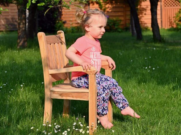 Gefertigt aus witterungsbeständigem Teakholz kann dieses Möbel zudem auch das ganze Jahr unbehandelt im Freien stehen. Lassen Sie die Kleinen Platz nehmen und genießen Sie gemeinsam mit ihnen die entspannenden Stunden im Freien.