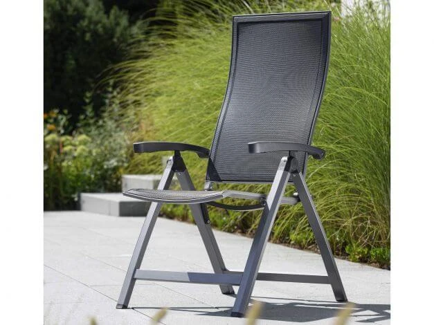 Der Alurahmen bei diesem modernen Gartenstuhl ist für einen minimalen Pflegeaufwand pulverbeschichtet und wird mit einem ebenso pflegeleichten, hautsympathischen und luftdurchlässigen Textilenbezug bespannt. Da sich der Klappsessel Kari zusammenklappen lässt kann er jederzeit platzsparend verstaut und einfach transportiert werden.