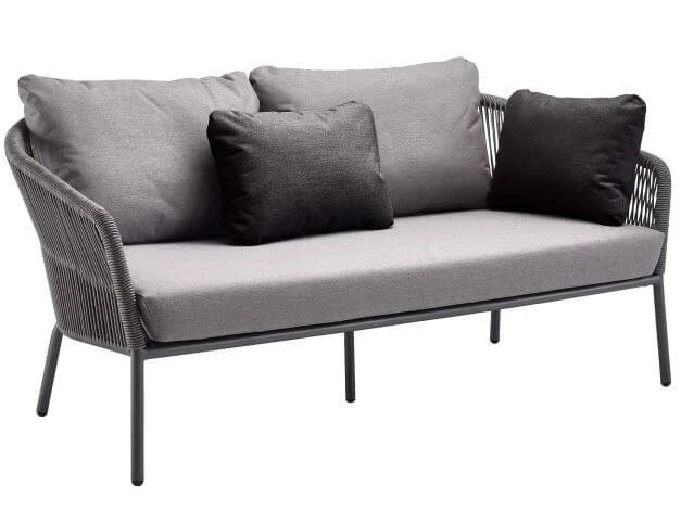 Bei diesem gemütlichen 2-Sitzer Loungesofa sind ein outdoorfähiges Sitzpolster mit einem Bezug in der Ausführung Bombay anthracite wetterfest, zwei Rücken-Kissen in Bombay anthracite sowie 2 Cocktailkissen in Bombay graphite im Lieferumfang enthalten.