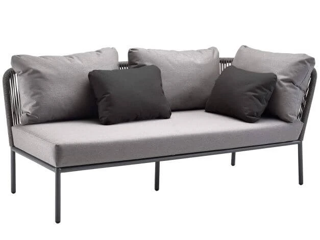 Ergänzen Sie zu dieser Recamiere mit der Armlehne vom Sitzplatz aus gesehen links (von vorne betrachtet auf der rechten Seite) zum Beispiel eine weitere Recamiere links um eine gemütliche Lounge-Ecke zu gestalten. Ein outdoorfähiges Sitzpolster mit einem Bezug in der Ausführung Bombay anthracite wetterfest, drei Rücken-Kissen in Bombay anthracite sowie 2 Cocktailkissen in Bombay graphite sind zudem im Lieferumfang enthalten.