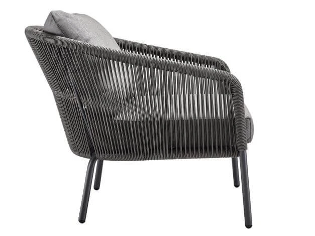 Bei diesem chilligen Loungesessel sind ein outdoorfähiges Sitzpolster mit einem Bezug in der Ausführung Bombay anthracite wetterfest sowie ein Rückenpolster Bombay anthracite im Lieferumfang enthalten.