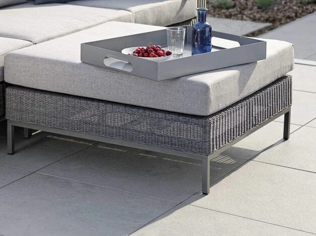 Dieses quadratische Untergestelle ist passend für die Korpusse Sessel, Eckelement, Mittelelement, Hocker und Beistelltisch und ist wahlweise in Edelstahl, Teakholz oder Aluminium in vier Farben erhältlich.