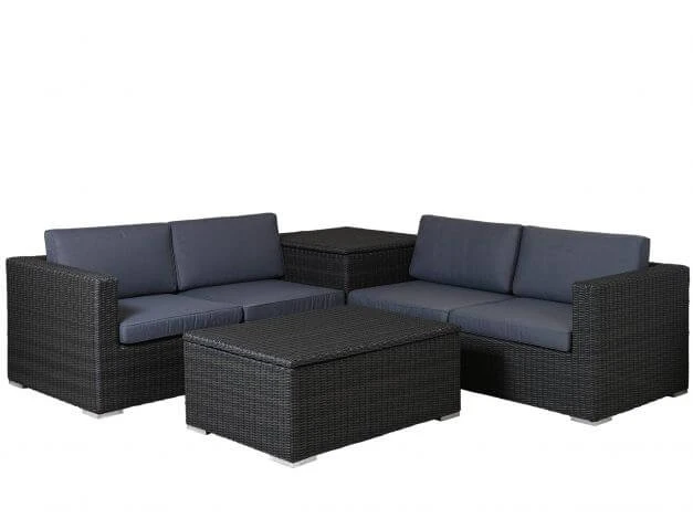 Loungemöbel Polyrattan Ecke mit praktischen Aufbewahrungstruhen in Tisch und Ecktisch