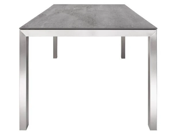Dieser Gartentisch aus dem Hause solpuri überzeugt mit seinem puristischen Design mit charakteristischen, rechteckigen Beinen aus hochwertigem Edelstahl. Die Tischplatte aus Dekton ist hervorragend für die Verwendung im Garten geeignet. Dekton ist ein revolutionäres Material bei dessen Herstellung eine Vielzahl an Mineralien unter extremen Druck verpresst werden.