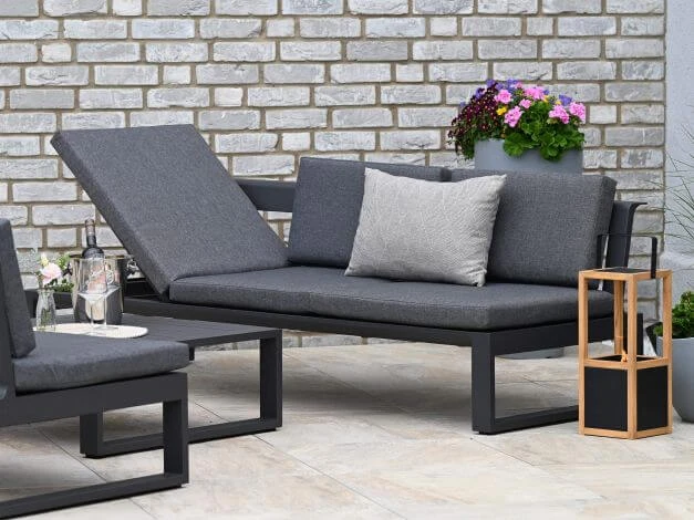 Ventura ist das perfekte Gartenmöbel für den flexiblen Einsatz auf der Terrasse. Es kann je nach Bedarf als gemütliches Loungesofa oder als Liege genutzt werden. Bei dem Loungemöbel »Ventura« lässt sich nämlich auf beiden Seiten die Sitzfläche mehrfach in der Höhe verstellen. So können Sie auf Wunsch die Loungebank in eine komfortable Liege verwandeln.