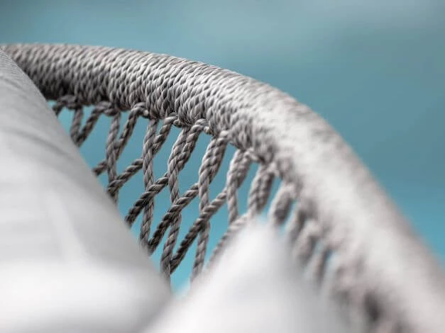 Die rautenförmige, offene Flechtung lässt die Formen der Serie Odea luftig und locker wirken. Das Rope aus Polypropylen ist besonders strapazierfähig und leicht. Die zweifarbige Melierung in der Kordel verleiht ihr ein natürliches Aussehen. In Kombination mit der farblich abgestimmten, wetterfesten Outdoor Polsterung mit einem cremefarbenem Bezug aus 100% Polyacryl wirkt Odea zudem besonders stilvoll.