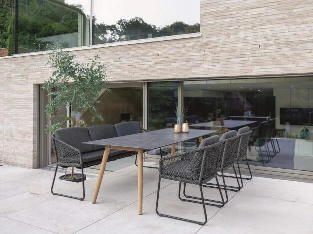Die rautenförmige, offene Flechtung lässt die Formen der Serie Odea luftig und locker wirken. Das Rope aus Polypropylen ist besonders strapazierfähig und leicht. Die zweifarbige Melierung in der Kordel verleiht ihr ein natürliches Aussehen. In Kombination mit den farblich abgestimmten Sitzpolstern wirkt Odea zudem besonders stilvoll.