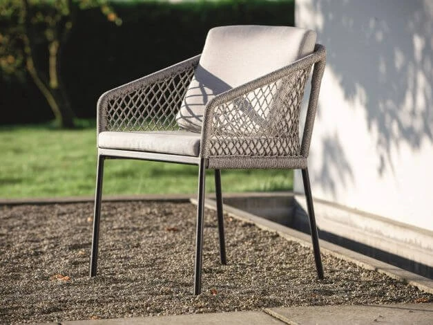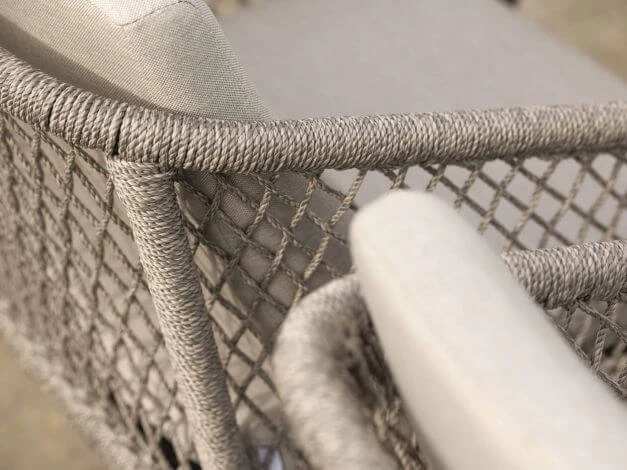 Die rautenförmige, offene Flechtung lässt die Formen der Serie Odea luftig und locker wirken. Das Rope aus Polypropylen ist besonders strapazierfähig und leicht. Die zweifarbige Melierung in der Kordel verleiht ihr ein natürliches Aussehen. In Kombination mit den farblich abgestimmten Sitzpolstern wirkt Odea zudem besonders stilvoll.