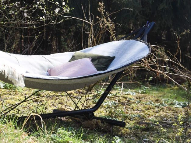 Die Cobana Hängematte hat ein durchdachtes, dänisches Design. Um bestmöglichen Komfort zu bieten und die schöne Form der Hängematte zu erhalten, sind zwei ergonomisch geformte Metallstäbe in die Hängematte eingenäht. Die schönen, handgenähten Nähte entlang der Kanten runden das optisch anspruchsvolle Gesamtbild dieser Hängematte ab.