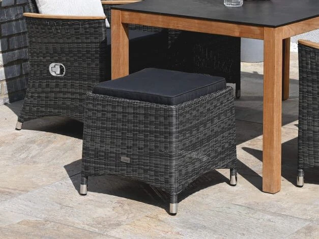 Mit diesem Hocker aus witterungsbeständigem Polyrattan-Geflecht haben Sie, dank entsprechender Höhe und Stabilität, eine Kombination aus Sitzgelegenheit und Fußhocker in einem. Das Rundgeflecht in dem Farbton stone macht diesen – durch sein angenehmes Gewicht leicht zu handhabenden – Hocker zu einem Hingucker in Ihrem Garten.