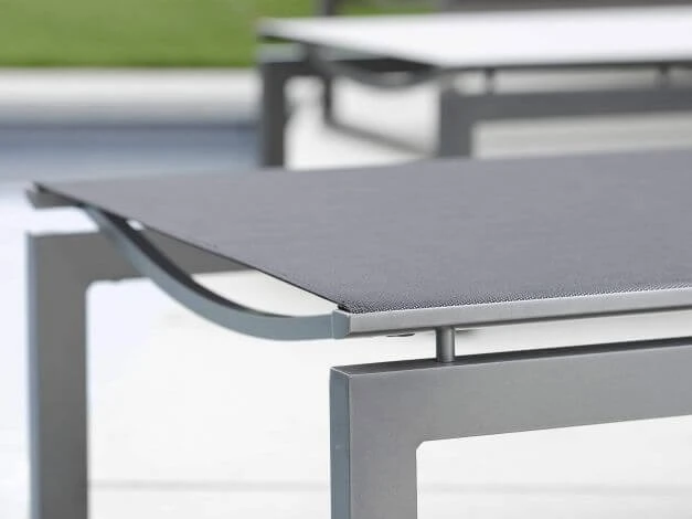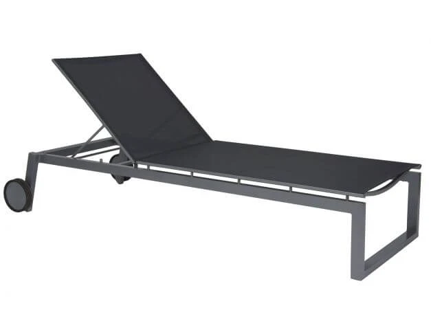Der Alurahmen bei diesem modernen Gartenmöbel ist für einen minimalen Pflegeaufwand pulverbeschichtet und wird mit einem ebenso pflegeleichten, hautsympathischen und luftdurchlässigen Textilenbezug bespannt.