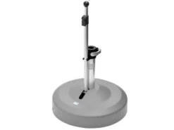 Die K-Line von LiRo hat eine komfortable Schnellspannung für die Arretierung eines Schirmstocks. Mithilfe der ausziehbaren Teleskopstange lassen sich vier gummierten Rollen an der unterseite ein- & ausfahren. Gleichzeitig dient sie als Führungsstange um diesen Schirmständer in Arbeitshöhe bewegen zu können. Im Inneren befinden sich zudem vier Betonsegmente die im wesentlichen das Gewicht dieses Ständers ausmachen. Sie lassen sich einzeln herausnehmen, so dass Sie bei einem Standortwechsel Ihren Rollensockel besser transportieren können.