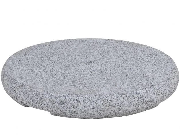 Dieser edle Granitstein leistet 90 Kilogramm Gewicht und eignet sich daher auch für größere Sonnenschirme oder Ampelschirme. Vier Griffmulden sind gleichmäßig verteilt, so dass der Sockel bei Bedarf mit zwei Personen bewegt werden kann.
