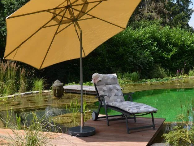 Granit Schirmständer mit seitlichem Griff und Rollen – für einen soliden Stand