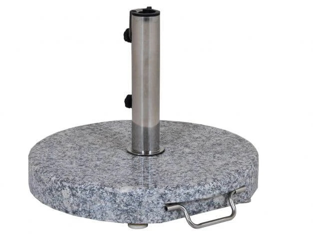 Jeder Sonnenschirm verdient einen soliden Fuß! Dieser Sockel leistet nicht nur 35 Kilogramm Gewicht sondern macht dabei auch eine gute Figur: Der graufarbene Granit ist glänzend poliert, das Standrohr aus hochwertigem Edelstahl. Zusammen ergibt sich so ein eleganter Schirmfuß mit modernem Flair.
