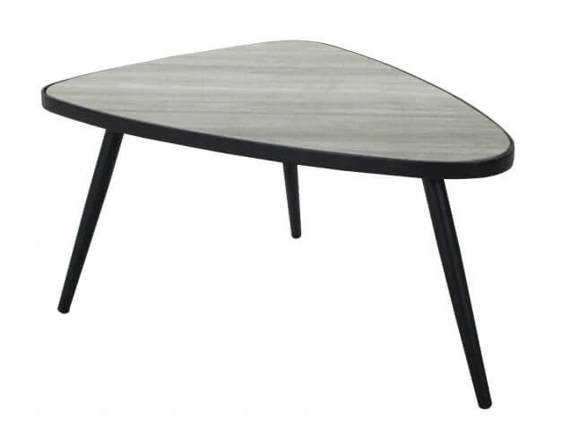 Dieser Beistelltisch bietet ein skandinavisches Design mit Tischplatte in abgerundeter Dreiecksform. Das stabile Gestell mit schräg stehenden Beinen wird aus pulverbeschichtetem Stahl gefertigt und bietet einen eleganten Kontrast zu der besonders pflegeleichten Tischplatte aus Keramik mit heller Holzoptik. Ob neben einer gemütlichen Loungegruppe oder zu einer Gartenliege – Dora lässt sich im Garten vielseitig einsetzen und bietet immer eine praktische Ablagefläche.