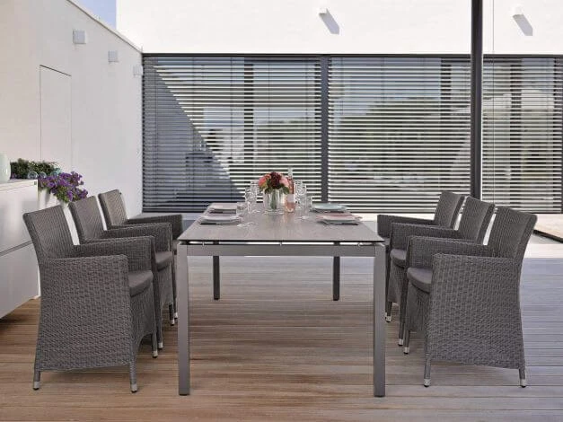 Wohnen im Freien in seiner schönsten Form! Mit Hilfe traditionellem Flechthandwerk ist aus einer Kunststofffaser, die auf den ersten Blick wie ein Naturprodukt anmutet, ein klares Design entstanden. In der Farbe basaltgrau entspricht der Geflechtsessel zudem den aktuellen Trendfarben und passt hervorragend in jeden Garten. Für hohen Komfort sorgt das fablich abgestimmte Sitzkissen in seidengrau welches zudem mit einem hochwertigen Bezug aus 100% Polyacryl mit hoher Lichtechtheit überzeugt.