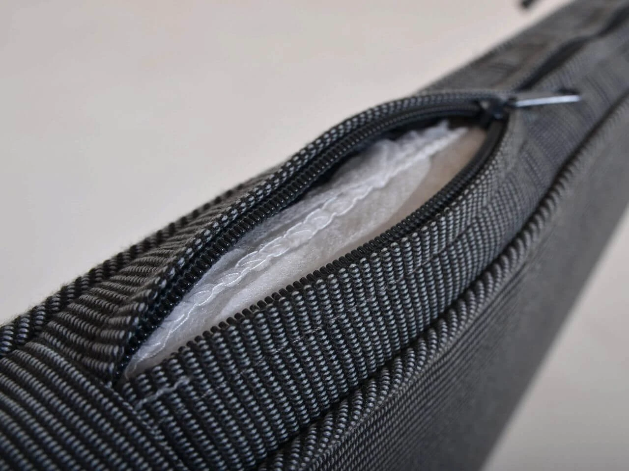 Das Strukturpolyester ist schmutzabweisend und leichte Verunreinigungen können einfach entfernt werden. Alternativ kann bei diesem Sitzpolster dank integriertem Reißverschluss der Bezug abgenommen und separat gewaschen werden.