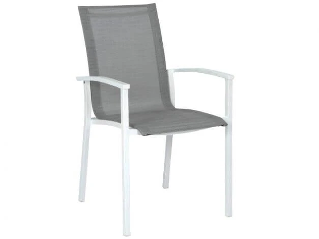EVOEE ist eine raffinierte Kombination aus outdoor-tauglichen Materialien und hohem Komfort. Die extra hohe Rückenlehne der durchgehenden Sitzschale ist leicht schwingend und mit einem hautsympathischem, luftdurchlässigem Textilenbezug bespannt. Der Alurahmen bei diesem filigranen Sessel ist für einen minimalen Pflegeaufwand zusätzlich pulverbeschichtet und hat zwei farblich abgestimmte Armlehnen aus Aluminium in weiß. Ob stilvoll klassische Umgebung oder modernes Ambiente – dieser stapelbare Gartenstuhl aus dem Hause STERN ist ein garantierter Blickfang!