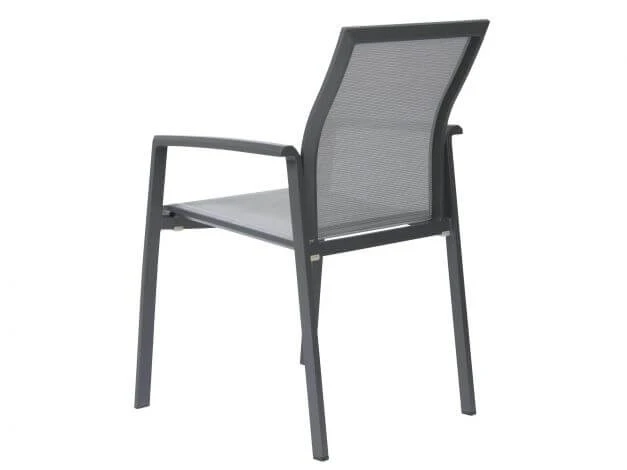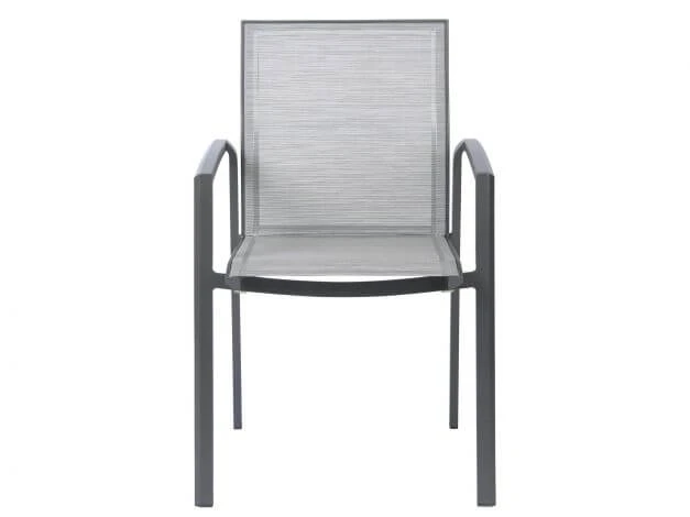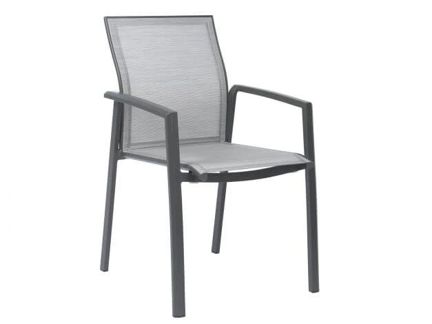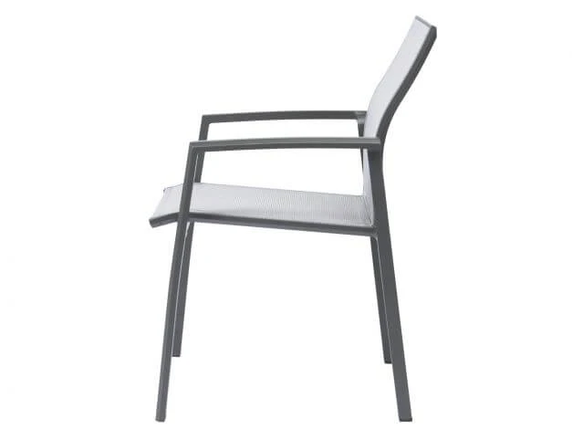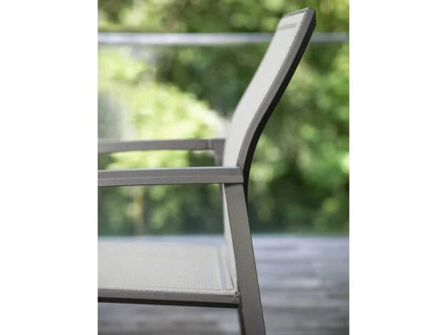 Der Alurahmen bei diesem modernen Gartenstuhl ist für einen minimalen Pflegeaufwand pulverbeschichtet und wird mit einem ebenso pflegeleichten, hautsympathischen und luftdurchlässigen Textilenbezug bespannt.