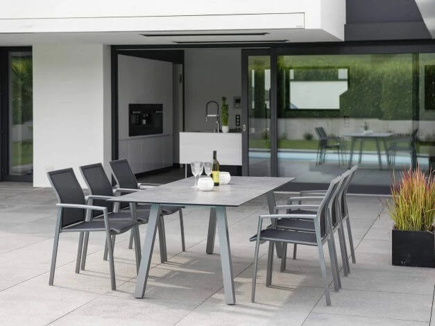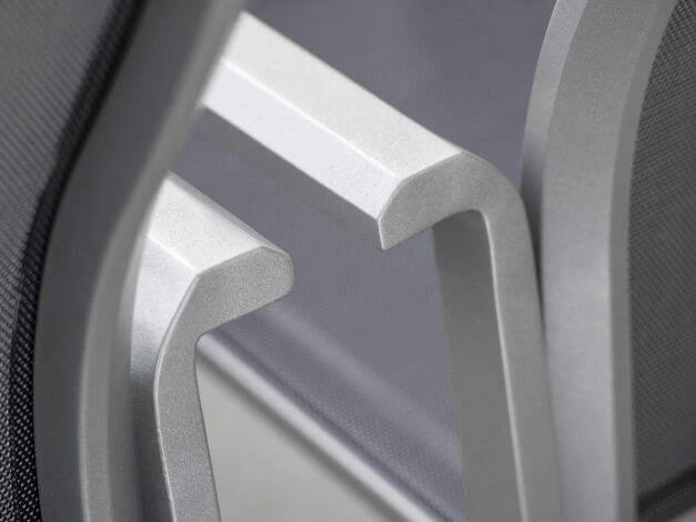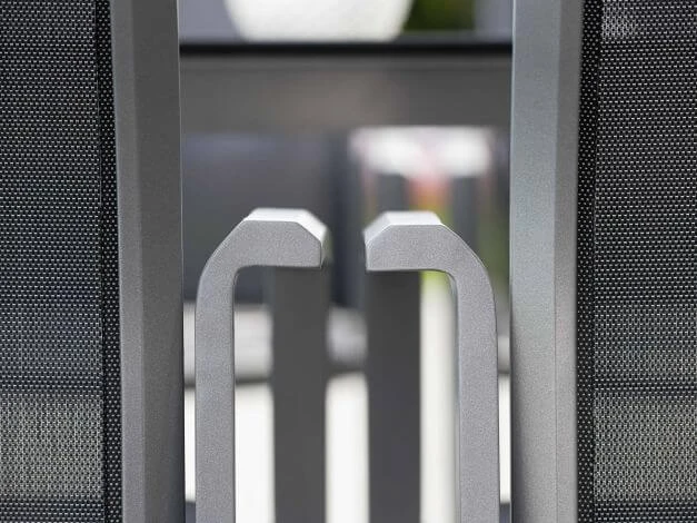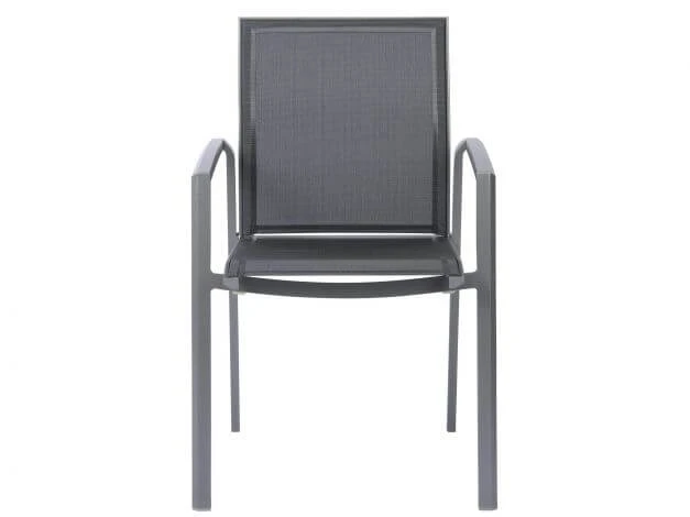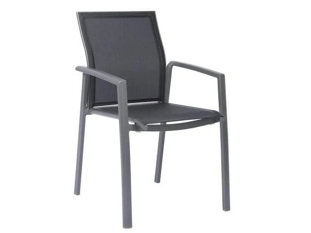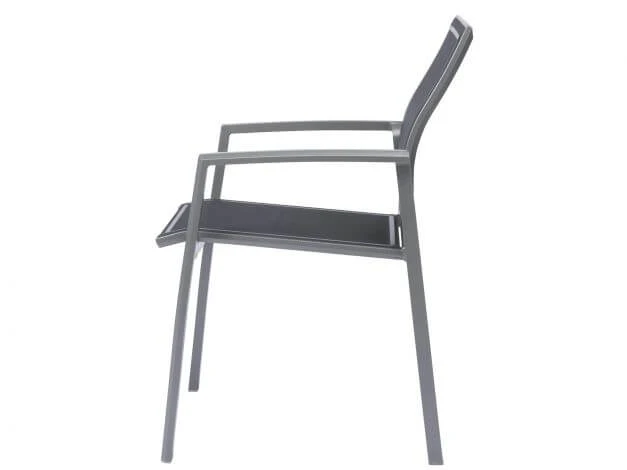 Der Alurahmen bei diesem modernen Gartenstuhl ist für einen minimalen Pflegeaufwand pulverbeschichtet und wird mit einem ebenso pflegeleichten, hautsympathischen und luftdurchlässigen Textilenbezug bespannt.