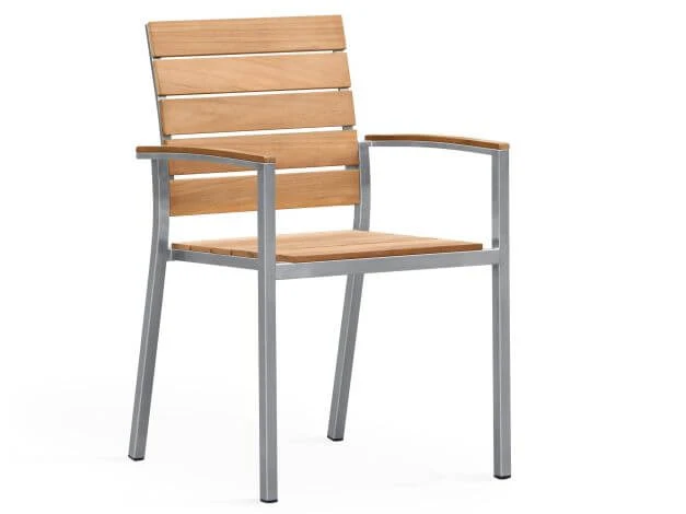 Formschön sind auch die Armlehnen aus hochwertigem Teakholz. Teak ist besonders für seine guten Temperatureigenschaften und stets angenehmer Oberfläche bekannt. Ob für Garten, Terrasse oder den Balkon – der Edelstahl Teakholz Stapelsessel Valis ist garantiert ein Hingucker in jedem Outdoorbereich.