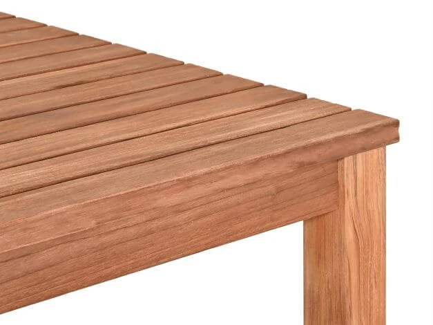 Das Teakholz ist nicht nur schön anzusehen, sondern auch äußerst strapazierfähig und langlebig. So können Sie sicher sein, dass dieser Bartisch Sie und Ihre Gäste für viele Jahre begleiten wird.