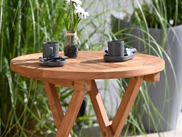 Ob als mobiler Abstelltisch für das Picknick im Freien oder als Beistelltisch für Ihre Gartenmöbel, dieser kleine runde Gartentisch aus Teak ist vielseitig einsetzbar. Bei Bedarf lässt dieser Beistelltisch einfach zusammenklappen, so dass er komfortabel transportiert oder platzsparend verstaut werden kann.