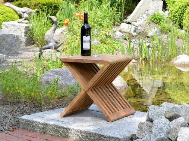 Teakholz Beistelltisch / Hocker in elegantem, X-förmigen Design