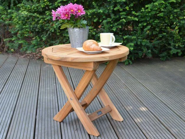 Praktischer Beistelltisch aus Teakholz für den Garten