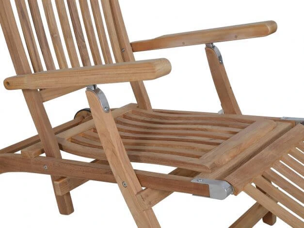 Ist bei einem Deckchair Teakholz verarbeitet, kann er auch unbehandelt im Freien stehen. Unbehandelt bekommt Teak mit der Zeit eine silbrig-gräuliche Oberfläche, die sogenannte Patina. Um ihr entgegenzuwirken, kann das Holz mit einer entsprechenden Lasur oder einem Öl behandelt werden.