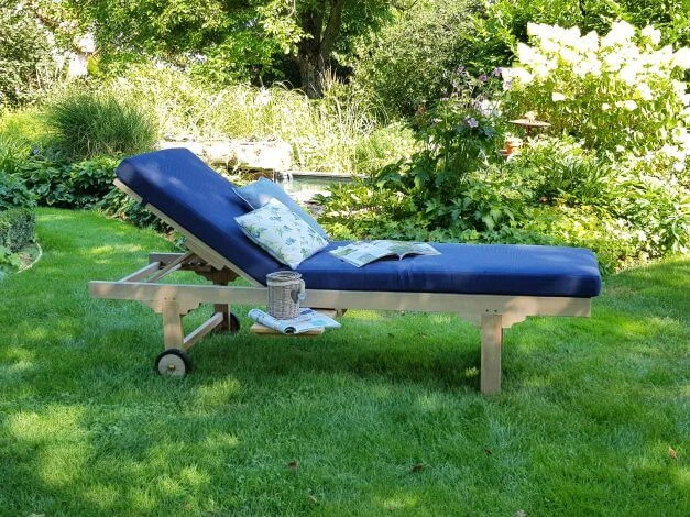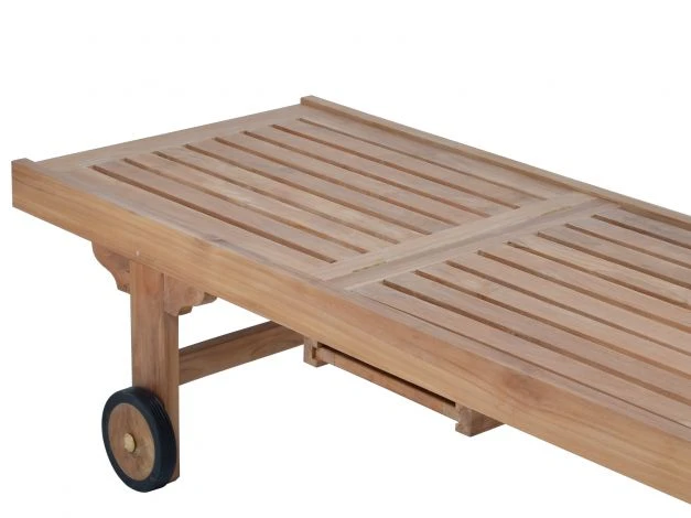 Diese rollbare Teakholzliege bietet besonders komfortablen Ein- und Ausstieg. Die Liegefläche ist extra hoch und somit besonders gut zugänglich. Bei heruntergestelltem Kopfteil kann die Liege Comfort auch als Sitzbank von bis zu 5 Personen genutzt werden. Sie wird aus massivem Teakholz gefertigt und ist absolut witterungsbeständig.