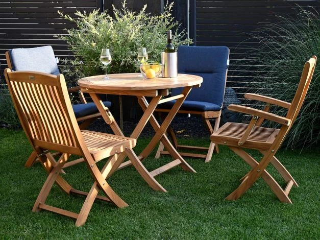 Das verarbeitete Teakholz ist angenehm gleichmässig in Farbe und Maserung. Teak ist ebenso wie die Beschläge und Schrauben aus Edelstahl langlebig und witterungsbeständig. Ob auf kleinem Balkon, Freisitz oder klassischer Terrasse – der Klappsessel Monterey mit Armlehnen wird Sie begeistern.