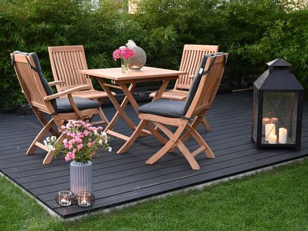 Der praktische Klappmechanismus kann kinderleicht bedient werden und das verarbeitete Teakholz ist angenehm gleichmässig in Farbe und Maserung. Teak ist ebenso wie die Beschläge und Schrauben aus Edelstahl besonders langlebig und witterungsbeständig. Ob auf kleinem Balkon, Freisitz oder klassischer Terrasse – der Klappstuhl Milano wird Sie begeistern.