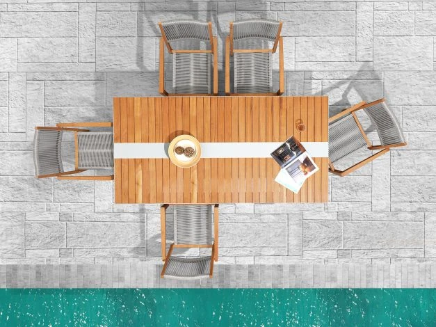Mit dem Stapelsessel Tarvos kommt Abwechslung in den Garten! Die neuartige Optik aus offener Rope-Flechtung in Kombination mit einem hochwertigen Teakholzrahmen bringt wohnliche Atmosphäre in den Garten. Das silberfarbene Ropegeflecht sorgt durch ihre leichte Federwirkung zudem für hohen Sitzkomfort und besteht aus einer witterungsbeständigen Faser und ist pflegeleicht und langlebig. Richten Sie sich mit dem Gartensessel Tarvos neu ein und genießen Sie stilvoll und komfortabel den Sommer auf der Terrasse.