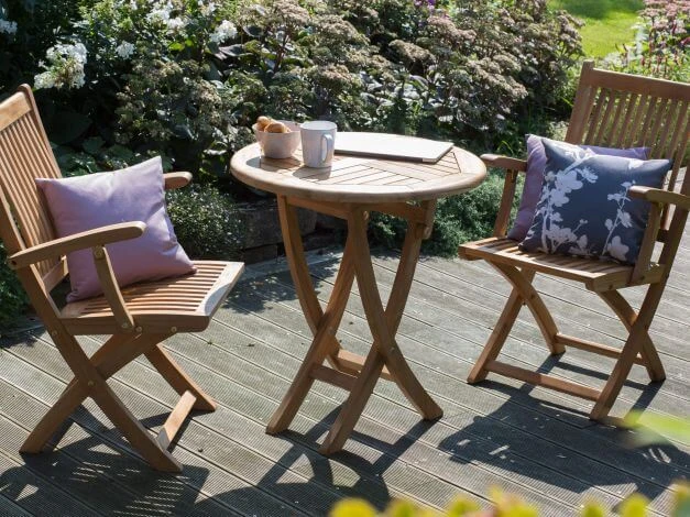 Dieser klappbare Teak Gartentisch aus dem Hause deVries ist ideal für kleinere Terrassen, den Balkon oder als praktische Ergänzung zu einer Sitzgruppe oder einem Grill. Der praktische Klappmechanismus kann kinderleicht bedient werden und das verarbeitete Teakholz ist angenehm gleichmässig in Farbe und Maserung. Dank sorgfältiger Verarbeitung und hochwertigster Materialien ist der Klapptisch Trinidad zudem besonders robust und langlebig.