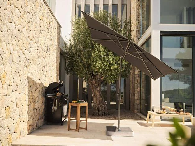 Der Schirmbezug begeistert Individualisten darüber hinaus mit einer vorzüglichen Lichtechtheit (~ 350 Sonnentage) und garantiert auch nach vielen Jahren eine gleichbleibende Farbwirkung. So können Sie auch Mut zur Farbe bekennen und den neuen Schattenspender gleichzeitig als Eyecatcher im Outdoorbereich nutzen.