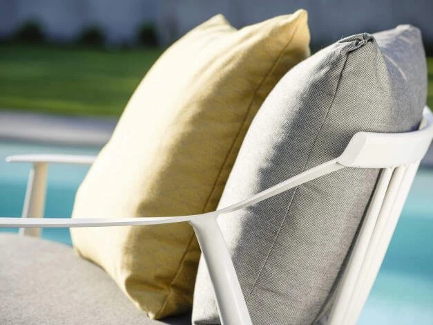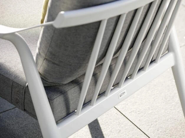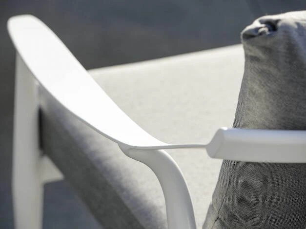 Der Loungesessel Vanda in weiß strahlt mit seiner klaren Form und filigranen Details Frische und Eleganz aus. In Kombination mit den seidengrauen Sitz- & Rückenpolstern entsteht ein nordischer Look der mit ganz besonderem Komfort überrascht. Das pulverbeschichtete Aluminiumgestell mit Rundrohrprofilen ist besonders pflegeleicht und passt perfekt zu den PU-beschichteten Kissen aus hochwertigem Polyacrly.