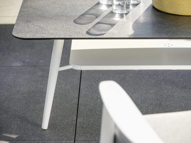 Ob in Kombination mit weiteren Loungemöbeln der Serie Vanda oder allein – dieser Lounge-Tisch von Stern ist eine tolle Ergänzung zu vielen Gartenmöbeln. Das pflegeleichte Aluminiumgestell mit konisch auslaufenden Beinen bietet ein praktisches Ablagefach aus Aluminium und wird mit einer besonders unempfindlichen Silverstar-Tischplatte kombiniert.